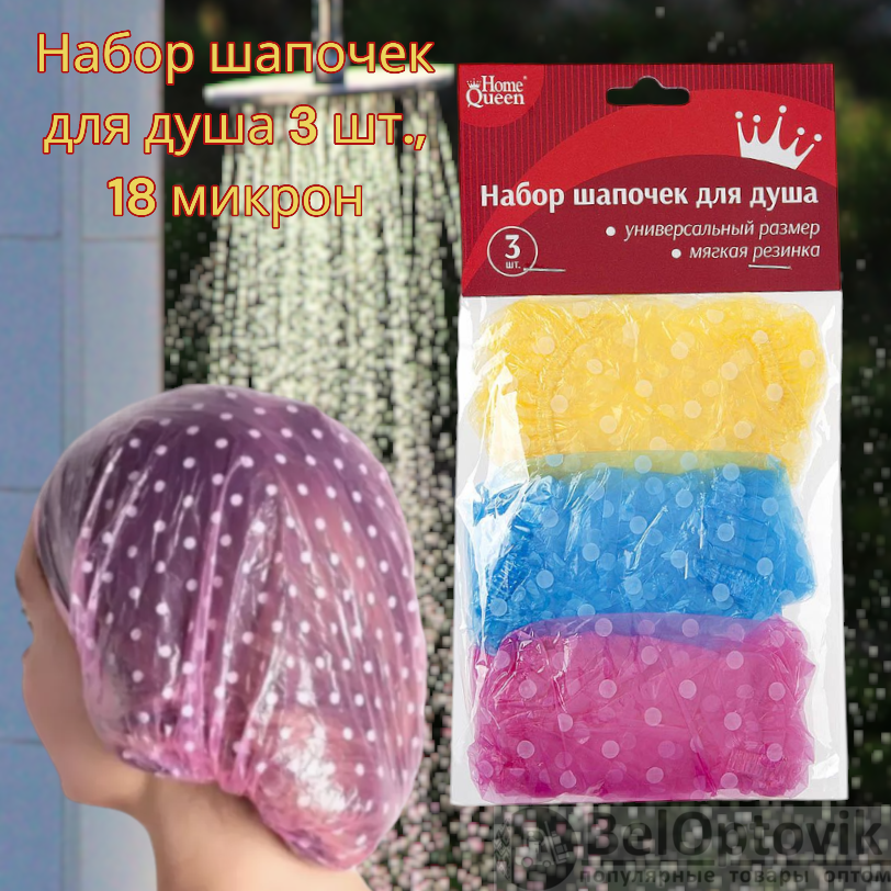 Набор универсальных шапочек для душа 3 шт., 18 микрон / Для бассейна, душа, для окрашивания