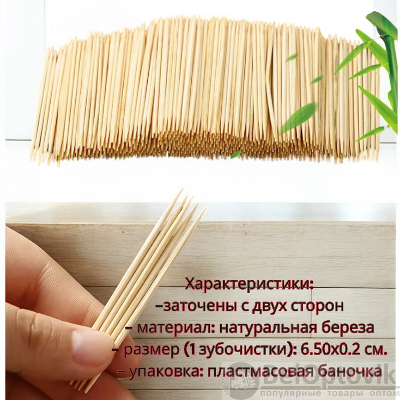 Размеры зубочистки: 6.50 х 0.20 х 0.20 см.;