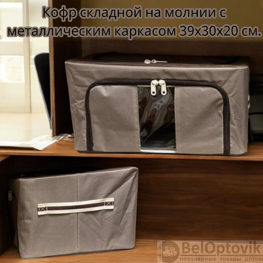 Что такое Кофр складной на молнии с металлическим каркасом для хранения вещей, детских игрушек, постельного белья 39х30х20 см., р-р S 22 литра / Тканевый складной органайзер с ручками