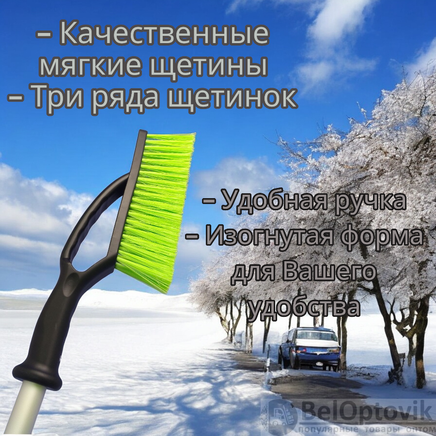 Легкая и компактная автомобильная щетка со скребком от снега и льда станет незаменимым аксессуаром для вашего авто в холодное время года. С ее помощью Вы с легкостью очистите как салон машины, так и окна от наледи и снега. Щетка для машины предназначена для ухода за вашим автомобилем в зимний период. Телескопическая (раздвигающаяся) щетка с ручкой из металла обеспечит безупречную чистоту на всех поверхностях: от багажника до крыши. Благодаря металлической опоре, расширяемая рукоятка позволит Вам дотянуться даже до труднодоступных мест, таких как номер или окна задних дверей или крыша большой машины.