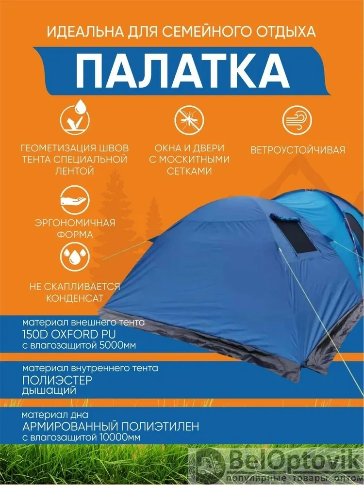 Кемпинговая палатка идеально подходит для семейных походов и путешествий с друзьями. Полезна для туризма, рыбалки и другого активного отдыха на природе.
