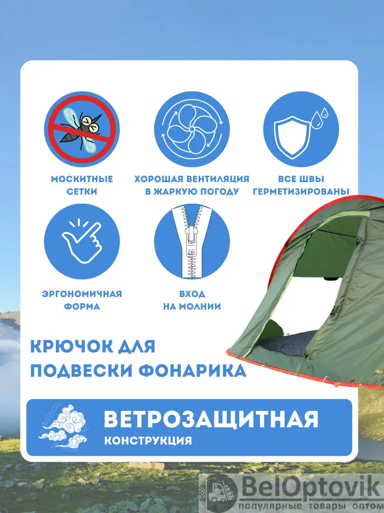 Туристическая палатка — идеальное решение для комфортного отдыха на природе. Эта палатка станет незаменимым спутником для любителей походов, кемпинга и путешествий.