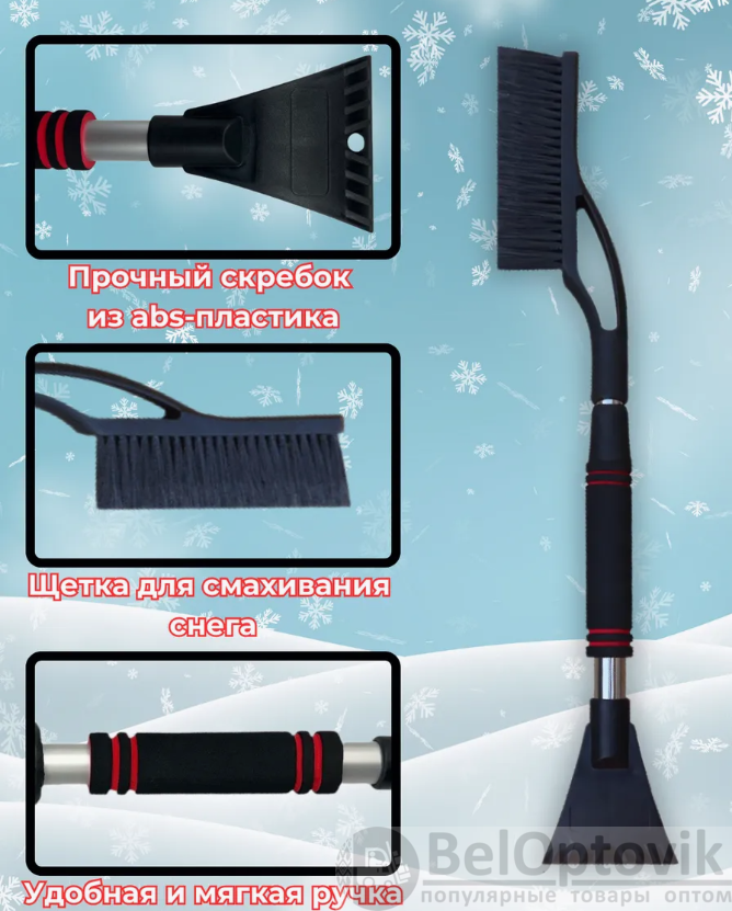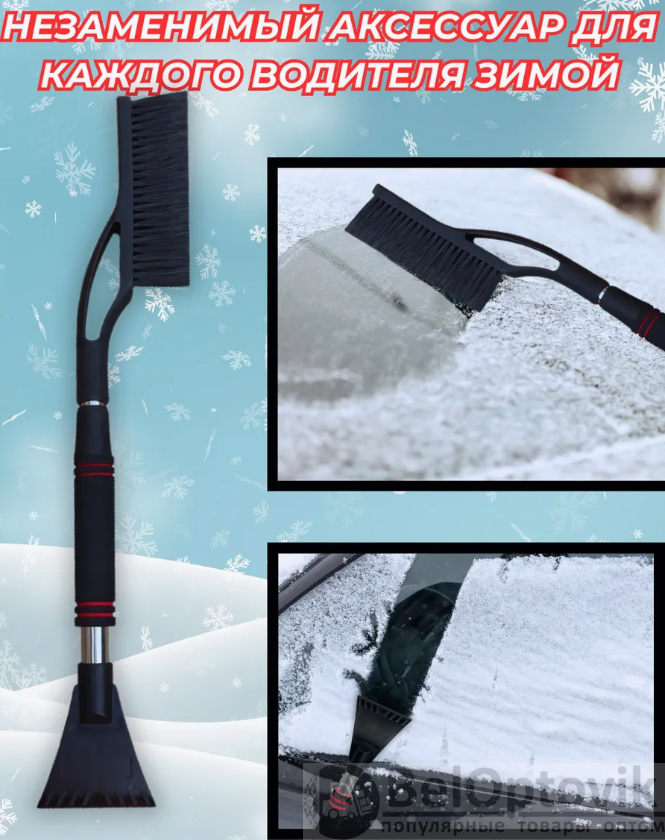 Почему купить Телескопическая автомобильная щетка - скребок от снега и льда 65-82 см. / Щетина 20 см. оптом выгодно у нас: