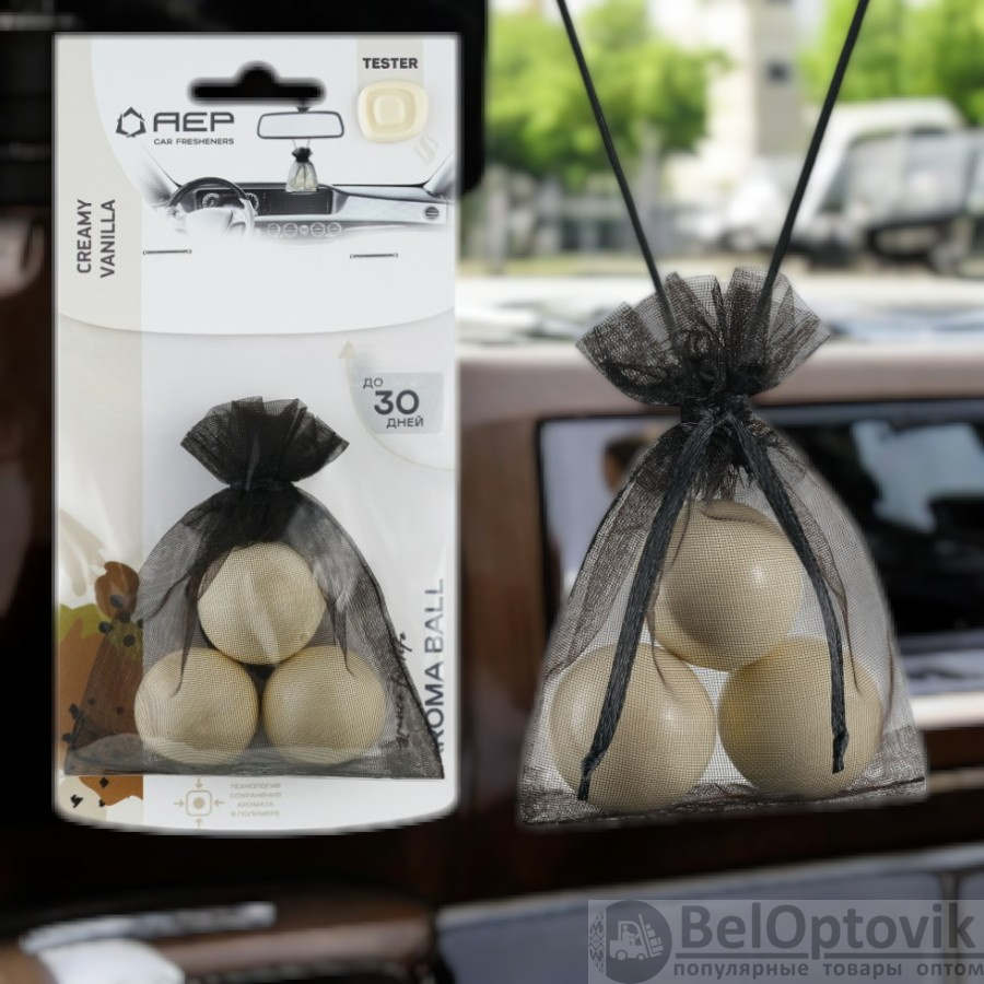• Уникальный дизайн: подвесной ароматизатор в виде трех мячей в тканевом мешочке станет стильным дополнением к интерьеру вашего автомобиля.