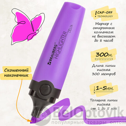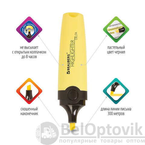Текстовыделители BRAUBERG "DELTA" предназначены для выделения текста на бумаге любого типа, включая факс-бумагу.