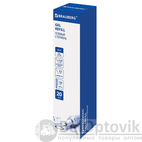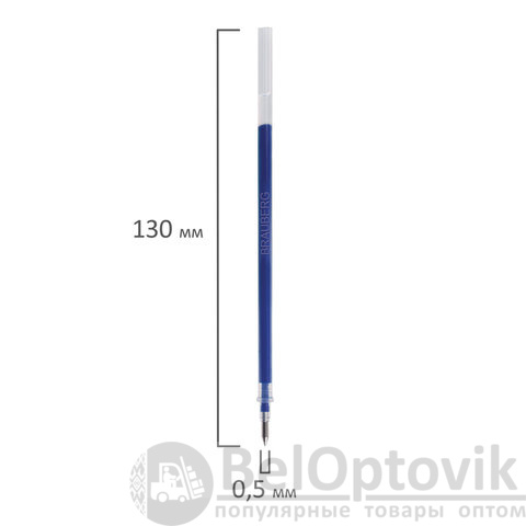 Стержень гелевый BRAUBERG 130 мм, СИНИЙ, узел 0,5 мм, линия письма 0,35 мм, 170166