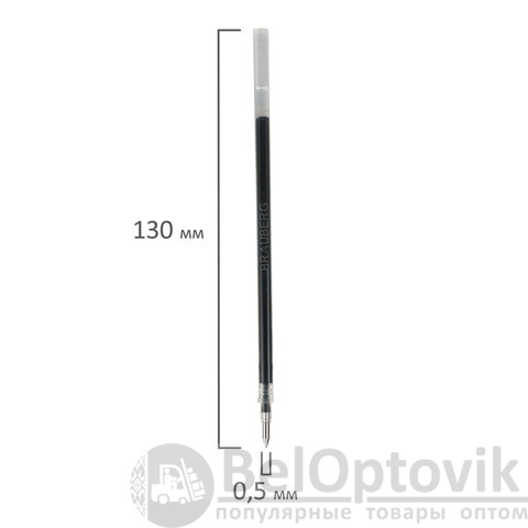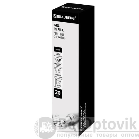 Стержень гелевый BRAUBERG 130 мм, ЧЕРНЫЙ, узел 0,5 мм, линия письма 0,35 мм, 170167