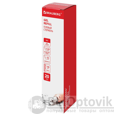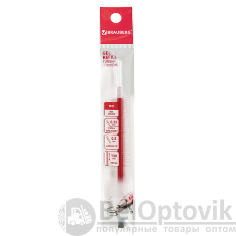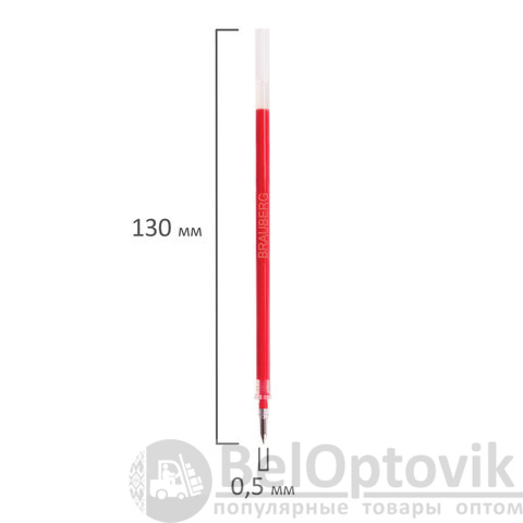 Стержень гелевый BRAUBERG 130 мм, КРАСНЫЙ, узел 0,5 мм, линия письма 0,35 мм, 170168