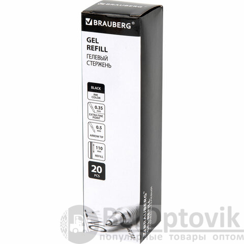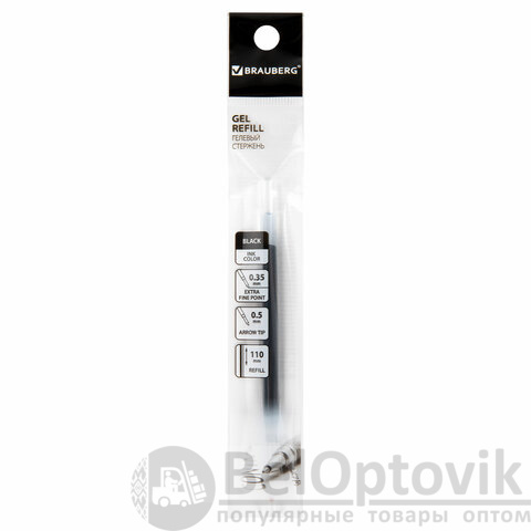 Стержень гелевый BRAUBERG 110 мм, ЧЕРНЫЙ, узел 0,5 мм, линия письма 0,35 мм, 170173