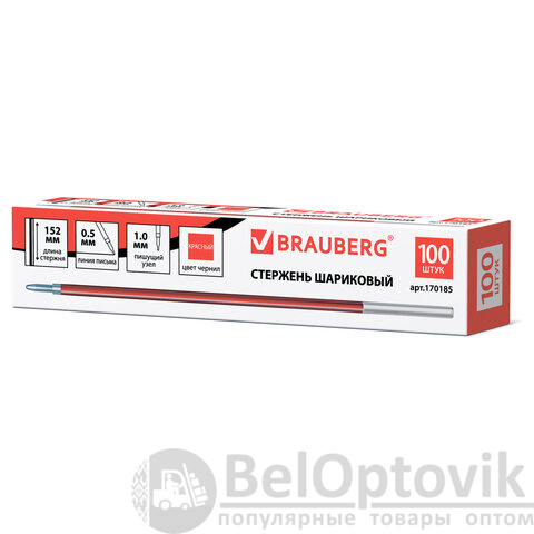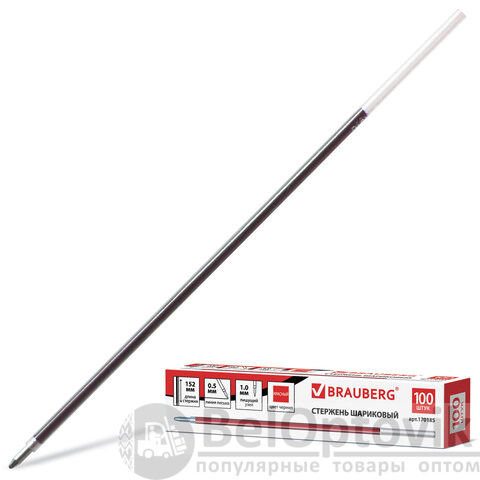 Стержень шариковый BRAUBERG 152 мм, КРАСНЫЙ, узел 1 мм, линия письма 0,5 мм, 170185