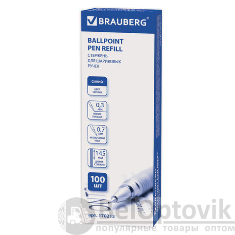 Стержень шариковый масляный BRAUBERG, 145 мм, СИНИЙ, игольчатый узел 0,7 мм, линия письма 0,3 мм, 170213