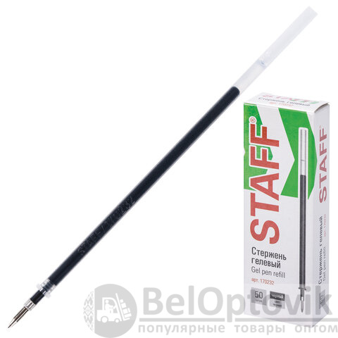 Стержень гелевый STAFF "Basic" GPR-232, 135 мм, ЧЕРНЫЙ, узел 0,5 мм, линия письма 0,35 мм, 170232