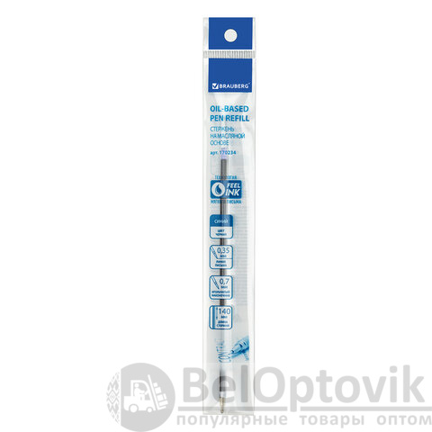 Стержень шариковый масляный BRAUBERG, 140 мм, СИНИЙ, игольчатый узел 0,7 мм, линия письма 0,35 мм, 170234