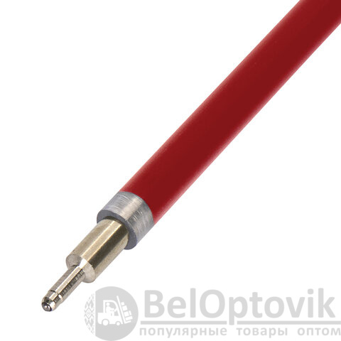 Длина стержня составляет 140 мм. Диаметр пишущего узла 0,7 мм создает ровную линию письма, равную 0,35 мм. Имеет игольчатый наконечник. Цвет чернил - красный. Поставляется в пакете с подвесом.