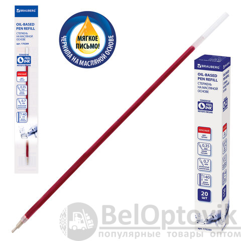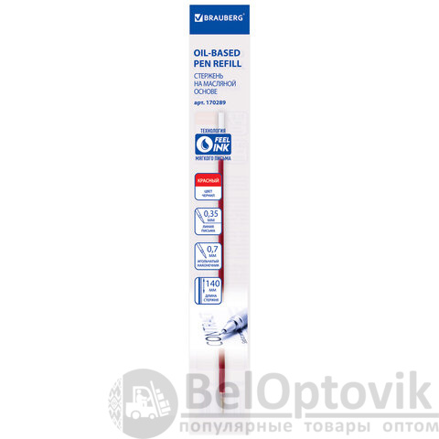 Стержень шариковый масляный BRAUBERG, 140 мм, КРАСНЫЙ, игольчатый узел 0,7 мм, линия письма 0,35 мм, 170289