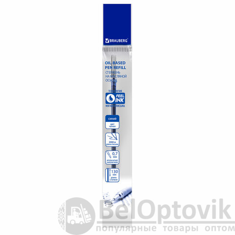 Стержень BRAUBERG с масляными чернилами обеспечивает ровное, комфортное письмо. Подходит для большинства ручек с откручивающимся носиком.