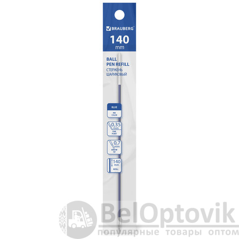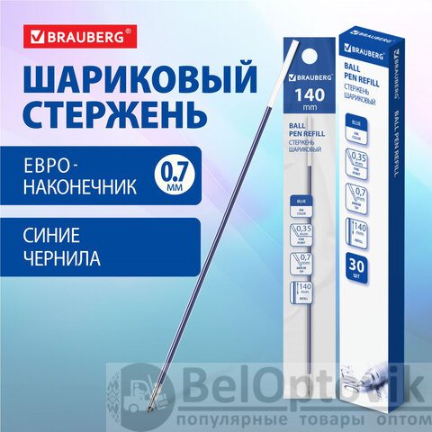 Стержень шариковый BRAUBERG "BP-GT", 140 мм, СИНИЙ, евронаконечник 0,7 мм, линия письма 0,35 мм, 170394