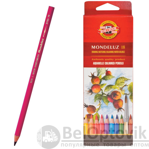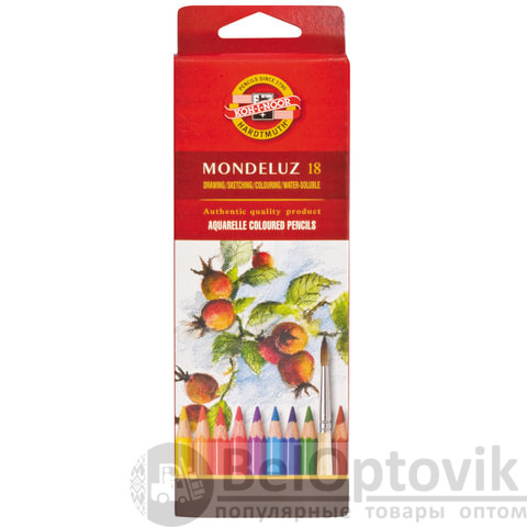 Карандаши цветные акварельные художественные KOH-I-NOOR "Mondeluz", 18 цветов, 3,8 мм, заточенные, европодвес, 3717/18, 3717018001KSRU