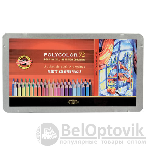 Карандаши цветные художественные KOH-I-NOOR "Polycolor", 72 цвета, 3,8 мм, металлическая коробка, 3827072001PL