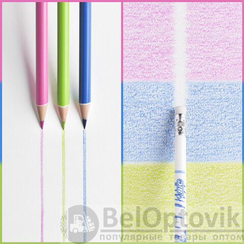 Цветные пластиковые карандаши BIC "Kids Evolution Illusion" высокого качества идеальны для ежедневного использования маленькими художниками от 5 лет.