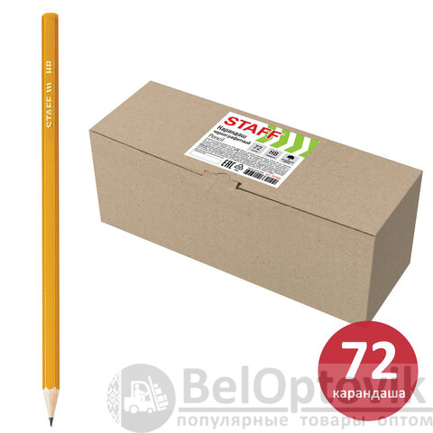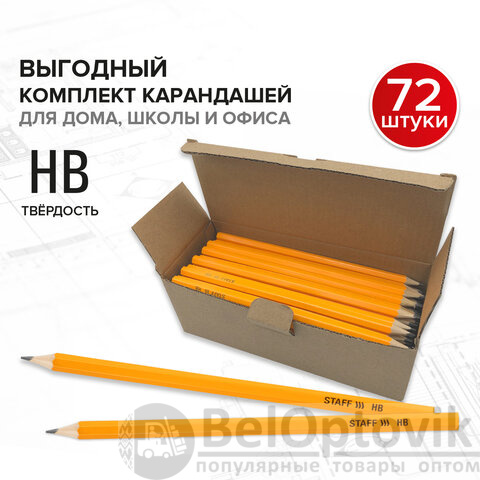 Карандаши чернографитные простые HB, ВЫГОДНАЯ УПАКОВКА КОМПЛЕКТ 72 штуки, STAFF, 181880