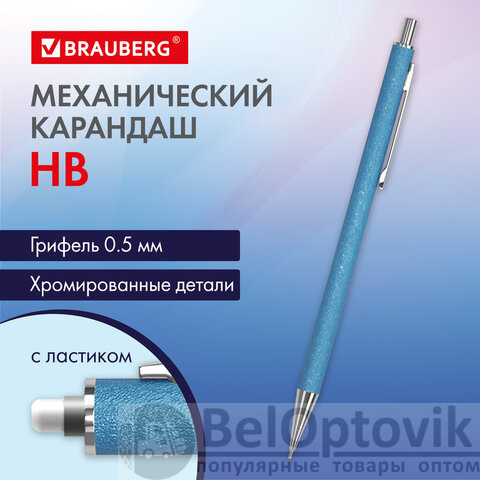 Карандаш механический 0,5 мм, HB, BRAUBERG OCEAN BLUE, металлический корпус, 181978