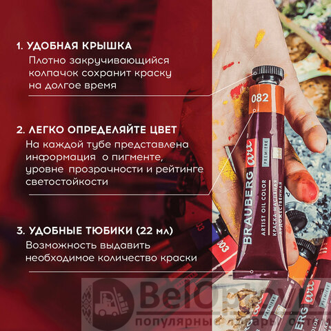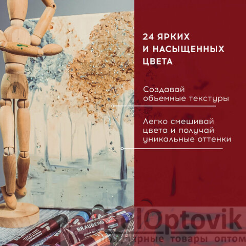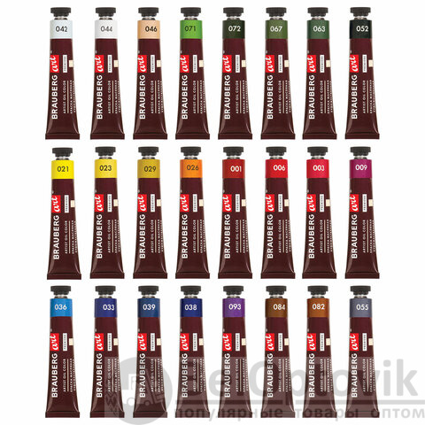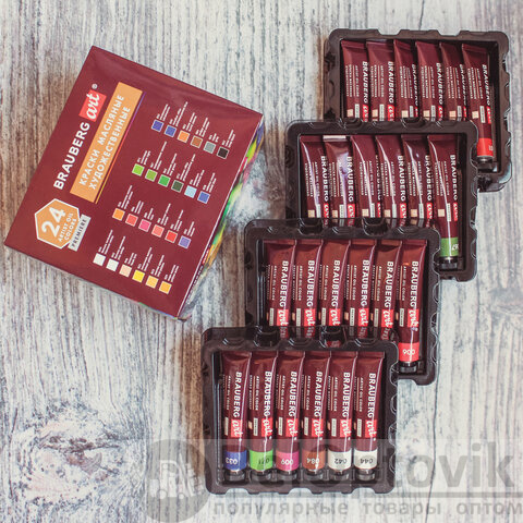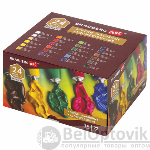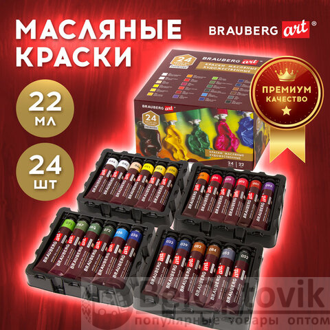 Краски масляные художественные BRAUBERG ART PREMIERE, 24 цв. по 22 мл, в тубах, 191460
