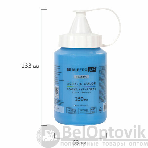 Краска акриловая художественная BRAUBERG ART CLASSIC, флакон 250 мл, НЕБЕСНО-ГОЛУБАЯ, 191711