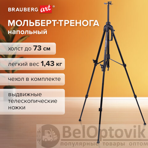 Мольберт-тренога металлический переносной, телескопический, 92х156х80 см, чехол, BRAUBERG ART, 192264