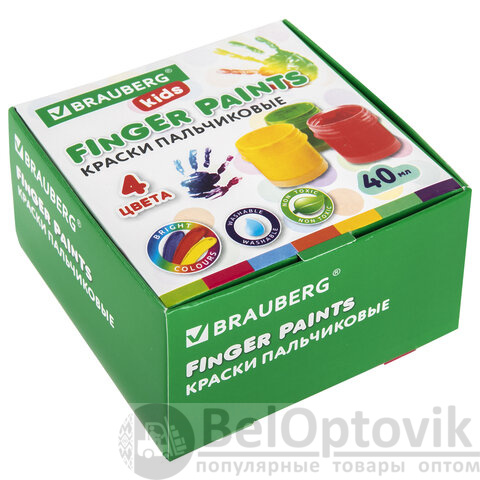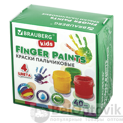 Краски пальчиковые для малышей от 1 года, 4 цвета по 40 мл, BRAUBERG KIDS, 192278