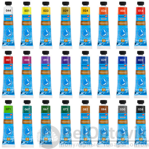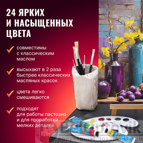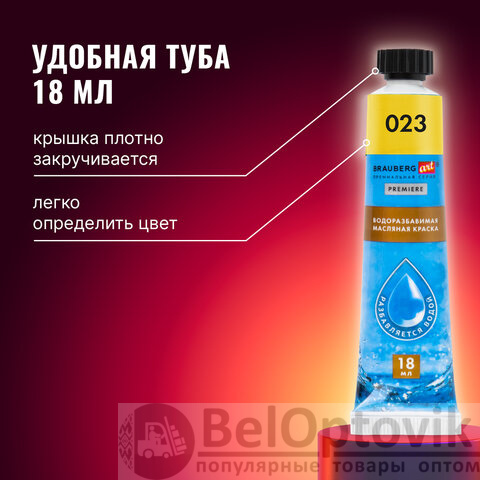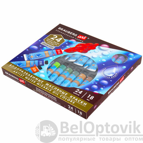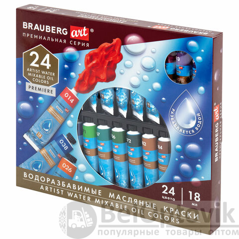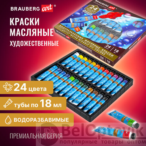 Краски масляные ВОДОРАЗБАВИМЫЕ художественные, 24 цвета по 18 мл в тубах, BRAUBERG ART PREMIERE, 192291