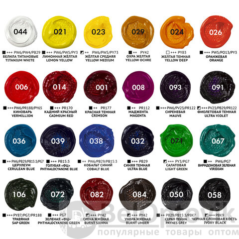 Краски поставляются в картонной коробке, в тубах по 18 мл.