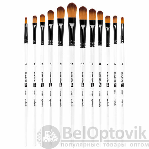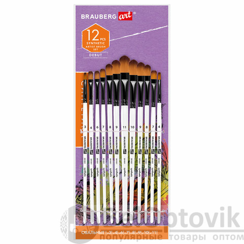 Кисти художественные набор 12 шт., синтетика, овальные № 1-12, BRAUBERG ART DEBUT, 201051