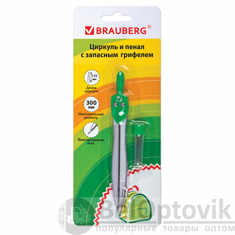 Готовальня BRAUBERG "Klasse", 2 предмета: циркуль 115 мм, пенал с грифелем, блистер, 210318