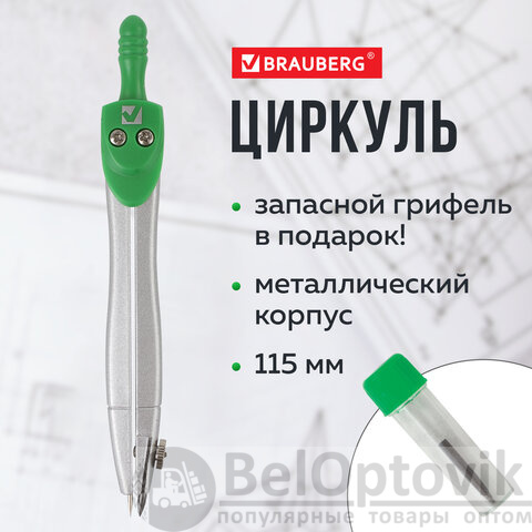 Металлическая готовальня BRAUBERG "Klasse" предназначена для выполнения чертежных работ. Для учеников младших и средних классов.