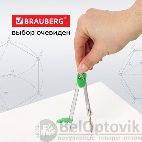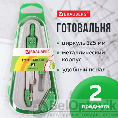 Металлическая готовальня BRAUBERG "Klasse" предназначена для выполнения чертежных работ. Для учеников младших и средних классов.