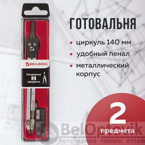Готовальня BRAUBERG "Architect", 2 предмета: циркуль 140 мм со сгибаемой ножкой, точилка, пенал с подвесом, 210322