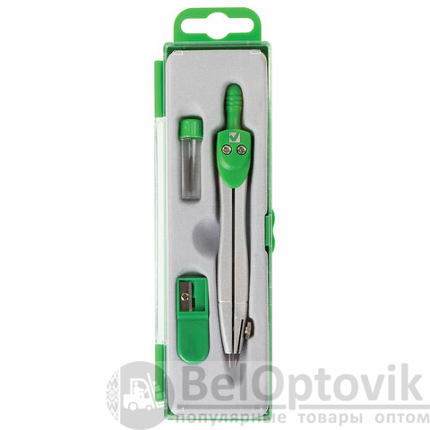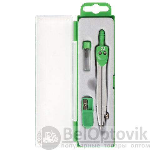 - Комплектация: пенал с запасным грифелем, точилка, циркуль