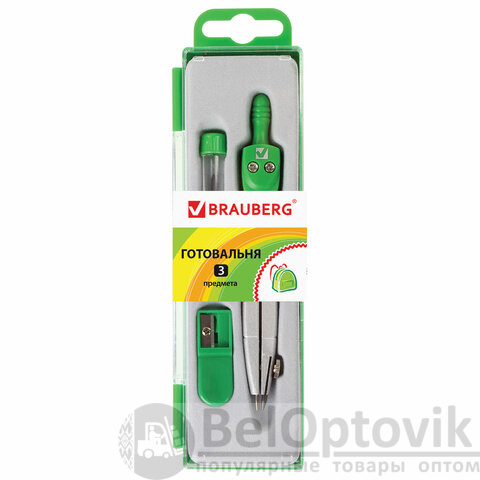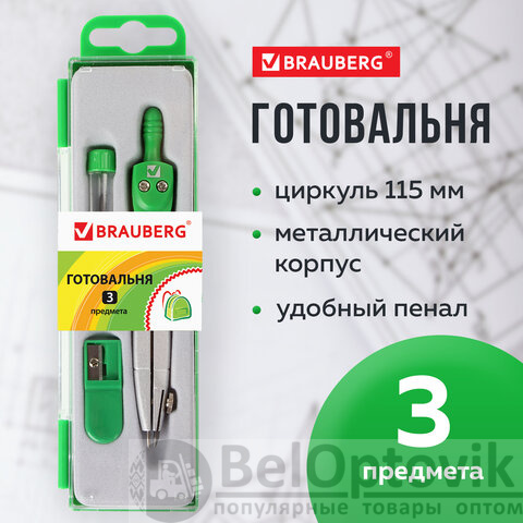 Металлическая готовальня BRAUBERG "Klasse" предназначена для выполнения чертежных работ. Для учеников младших и средних классов.