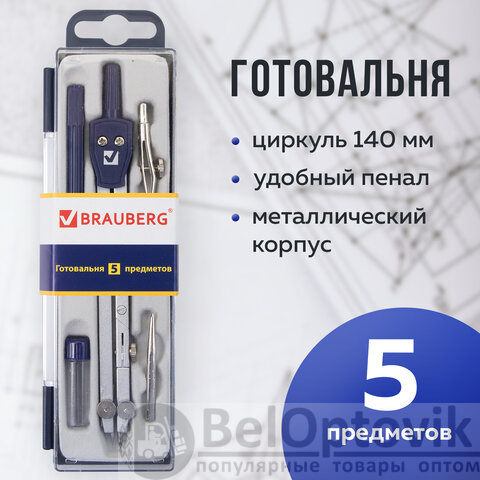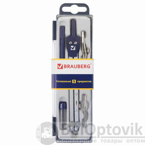 Готовальня BRAUBERG "Student Oxford", 5 предметов: циркуль 140 мм, 2 вставки, держатель, грифель, 210337
