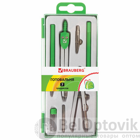 Металлическая готовальня BRAUBERG "Klasse" предназначена для выполнения чертежных работ. Для учеников младших и средних классов.