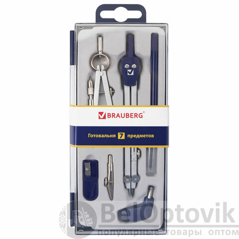 Готовальня BRAUBERG "Student Oxford", 7 предметов: наполнение-1, пенал с подвесом, 210347