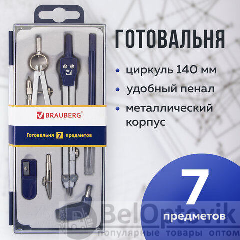 Металлическая готовальня BRAUBERG "Student Oxford" предназначена для выполнения чертежных работ. Для учеников старших классов и студентов.