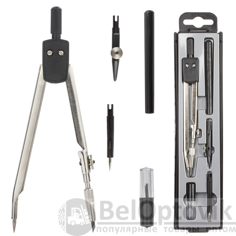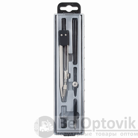 - Комплектация: игольная вставка, пенал с запасным грифелем, рейсфедерная вставка, ручка, циркуль