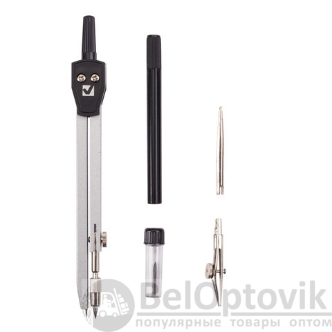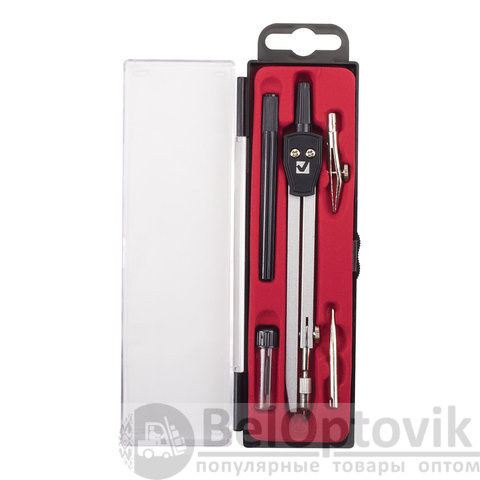- Комплектация: игольная вставка, пенал с запасным грифелем, рейсфедерная вставка и держатель, циркуль