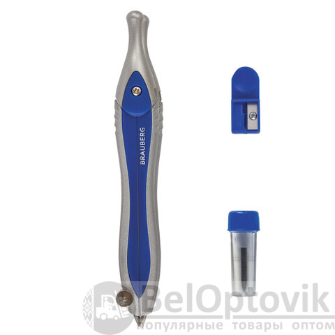 - Комплектация: пенал с запасным грифелем, точилка, циркуль