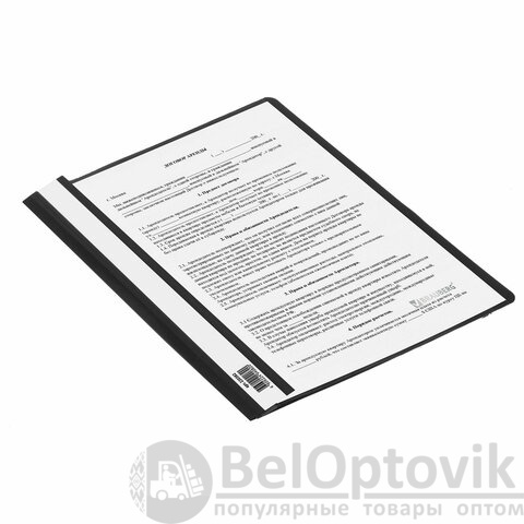 Фиксирует до 100 листов формата А4. Толщина пластика верхнего листа составляет 130 мкм, а нижнего - 180 мкм. Предельно простой механизм подшивки: металлические усики и пластиковая планка для надежной фиксации документов. Скоросшиватель изготовлен из качественного полипропилена. Прозрачный верхний лист позволяет определить содержимое, не открывая скоросшиватель, который к тому же снабжен сменным пластиковым корешком, что дает возможность структурировать информацию. Благодаря фактуре "песок" и строгому черному цвету обложки папка никогда не затеряется на полке.