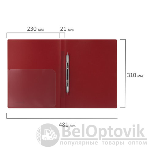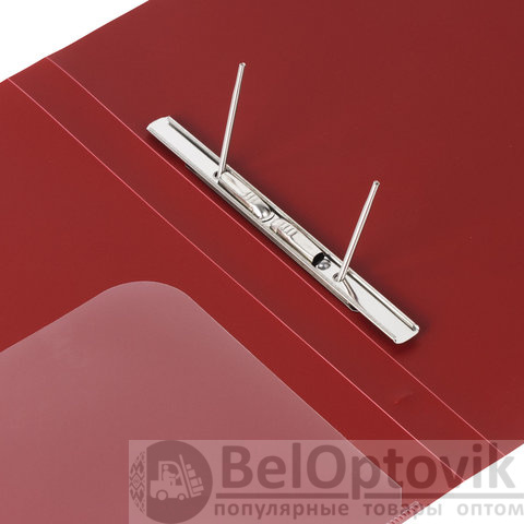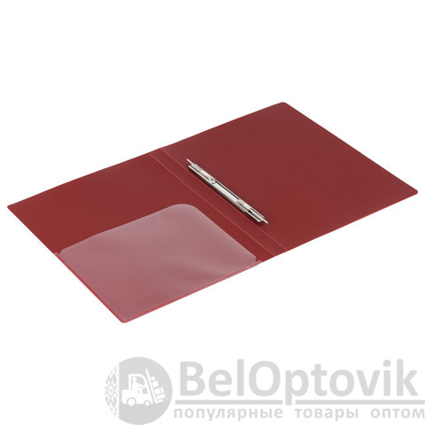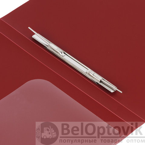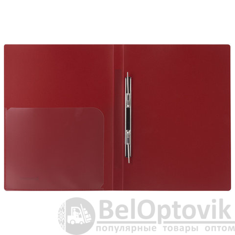 Изготовлена из высококачественного пластика темно-красного цвета толщиной 0,6 мм с оригинальной диагональной фактурой. Обеспечивает хранение до 100 листов формата А4. Металлический скоросшиватель с пружинным механизмом обеспечит надежную фиксацию документов. Кроме того, папка снабжена прозрачным внутренним карманом. Для идентификации имеется бумажный корешок. Поставляется в индивидуальной упаковке.
