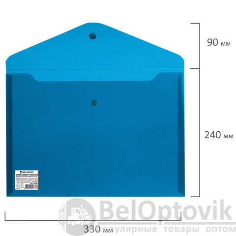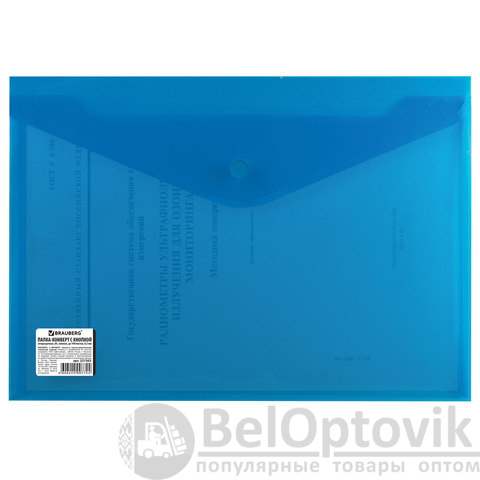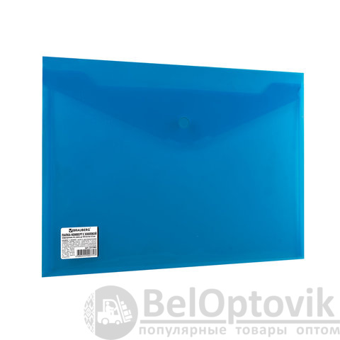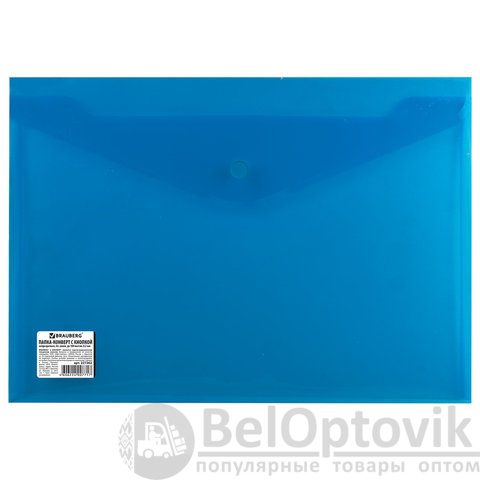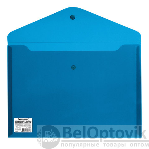Папка-конверт с кнопкой BRAUBERG, А4, до 100 листов, непрозрачная, синяя, СВЕРХПРОЧНАЯ 0,2 мм, 221362