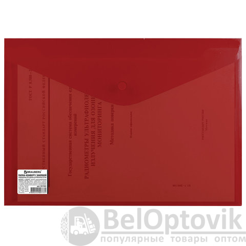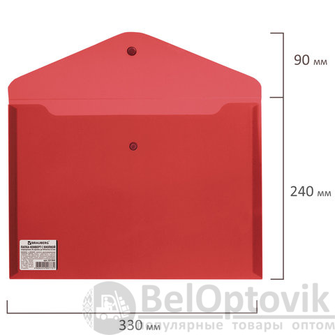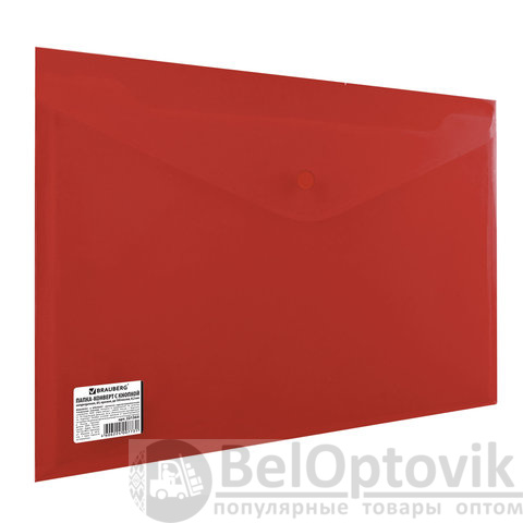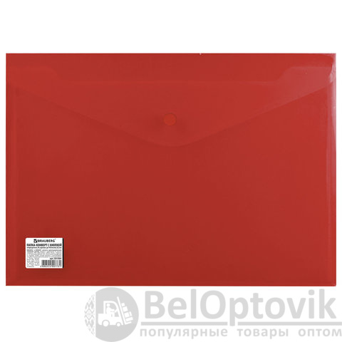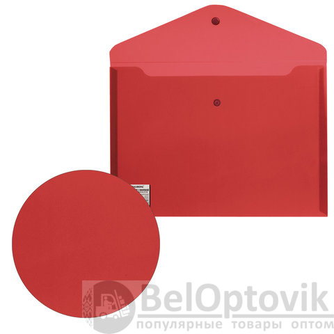 Папка-конверт с кнопкой BRAUBERG, А4, до 100 листов, непрозрачная, красная, СВЕРХПРОЧНАЯ 0,2 мм, 221364